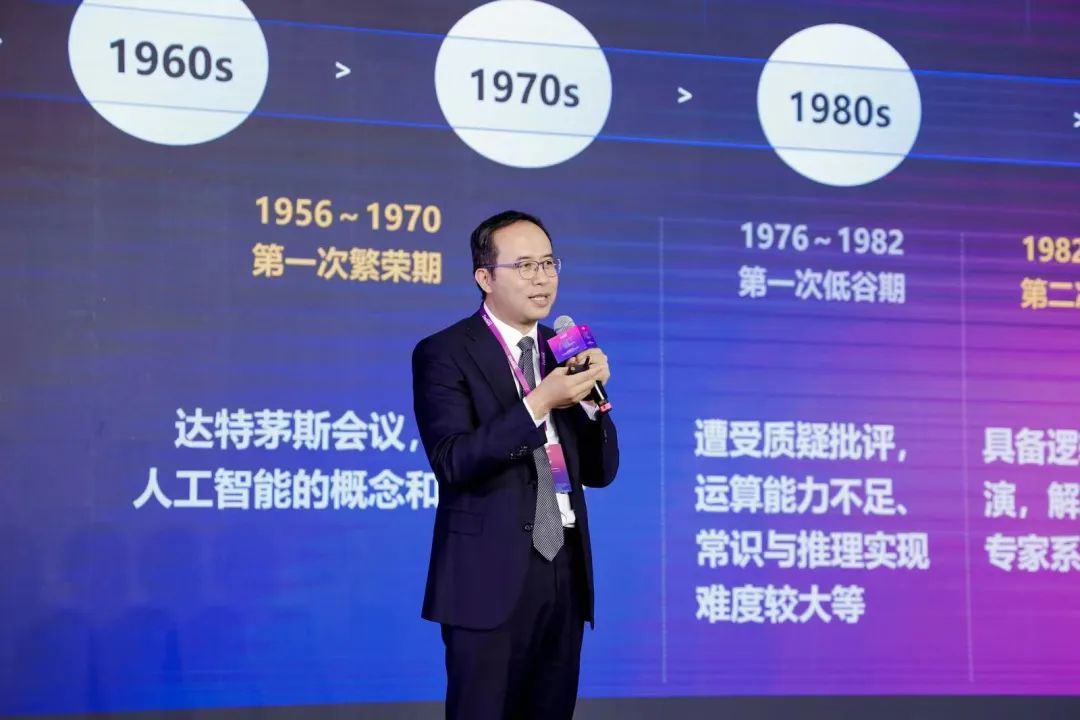 中国科学院院士何积丰在峰会上进行了专题演讲。他深入分析了人工智能技术的发展趋势,以及AI如何成为社会数字化转型的重要基石。他的专题演讲不仅提供了行业洞察,还为与会者带来了关于AI技术发展的深刻见解。