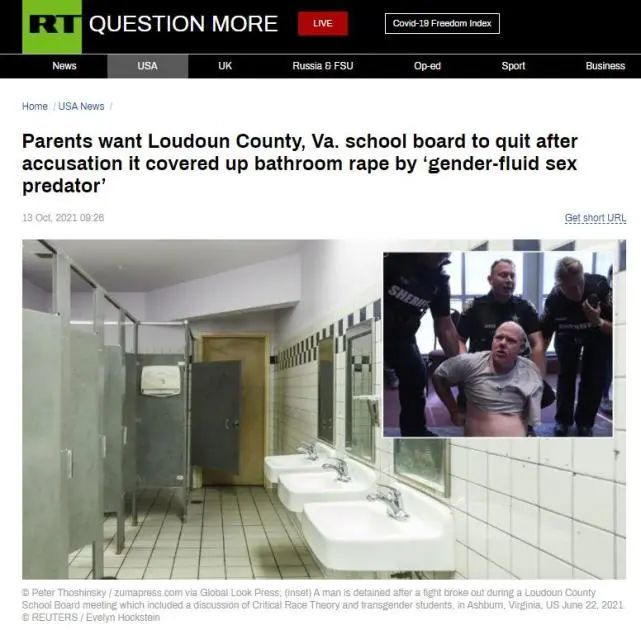 2021年,美国女生在学校的女厕所里,被闯入的自称跨性别者的男生强奸,学校不仅没有惩治性侵犯,还包庇了他。