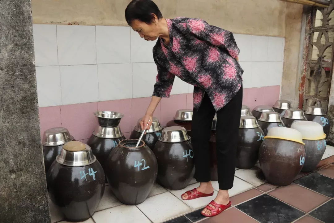 迄今为止,两埕醋仍旧保存完好。在每次醋快酌完的时候,六婶会重新往里面添加糯米,得以让这两埕醋在时光的沉淀中,依旧保持着最初的甘醇和风味。