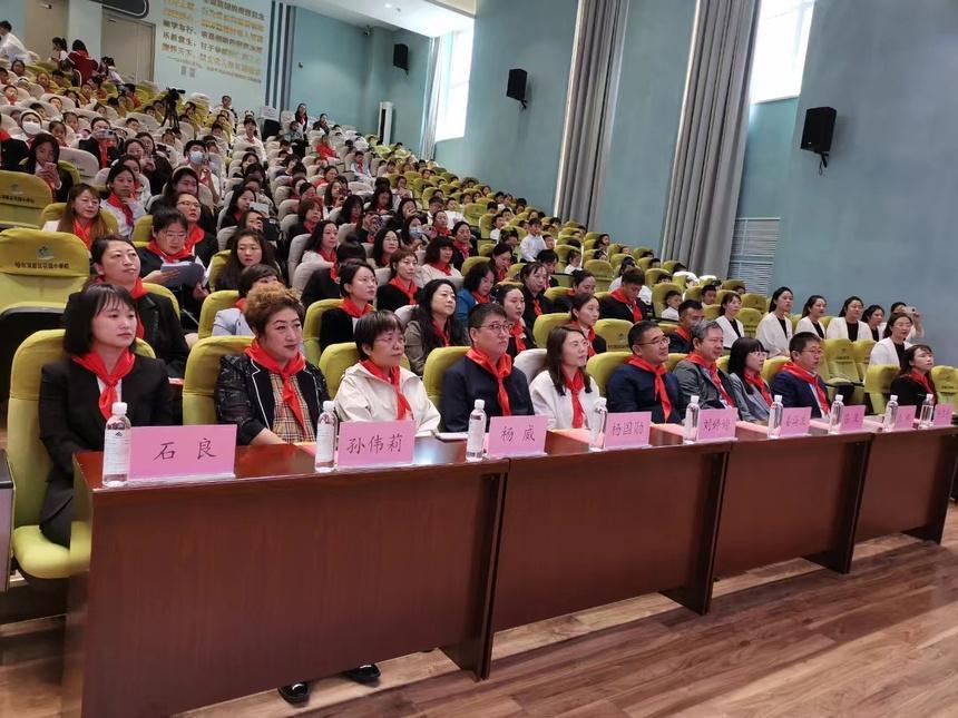 团市委、少工委、教育局主要负责同志以及哈尔滨市各区、县(市)少先队辅导员代表、新区花园小学的师生代表共300余人参加活动。
