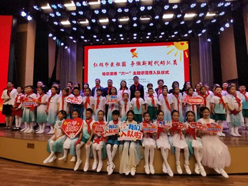 5月29日上午,共青团哈尔滨市委、哈尔滨市少工委在哈尔滨新区花园小学校举行“红领巾爱祖国 争做新时代好队员”哈尔滨市“六一”主题示范性入队仪式。庆祝即将到来的“六一”儿童节,展现冰城少年儿童朝气蓬勃的精神风貌,表达新时代少年儿童对伟大祖国的热爱和祝福。