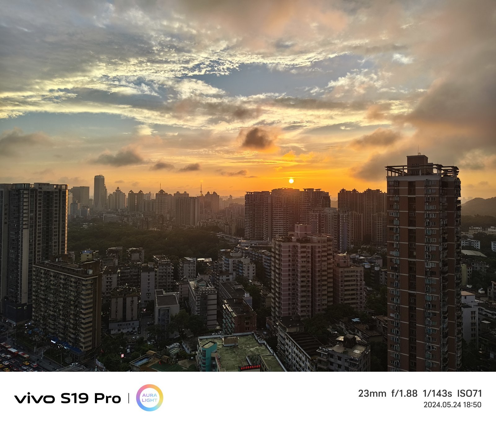 简单介绍一下 vivo S19 Pro 的影像硬件,主摄采用全新的 5000 万像素 IMX921 传感器,1/1.56 英寸的底和 F1.88 大光圈,还有自研的人眼仿生技术以及 OIS 超级防抖。刚好最近广州的晚霞相当好看,实际 S19 Pro 拍摄的样张也能很好地还原夕阳的色彩,观感还是很震撼的。