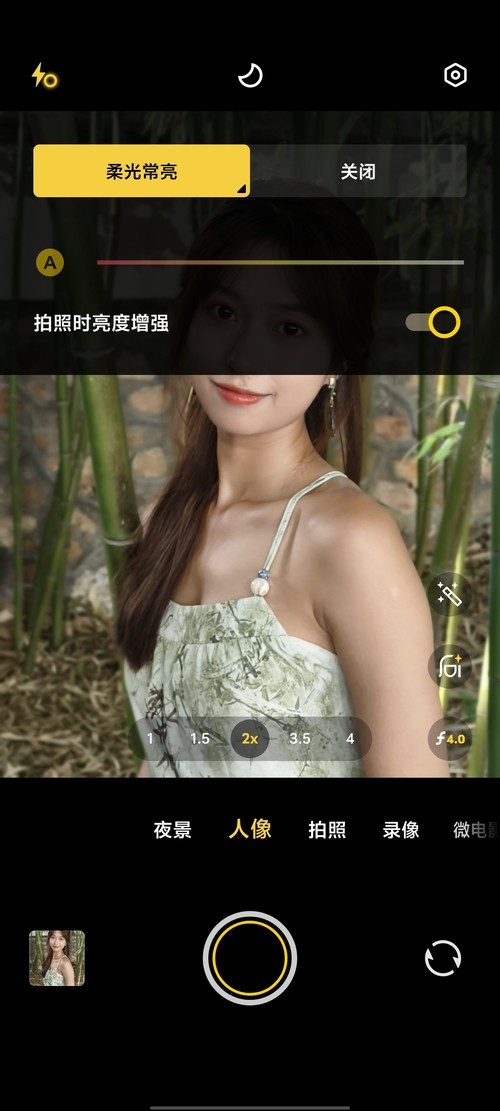 逆光人像自拍,前置柔光灯开启