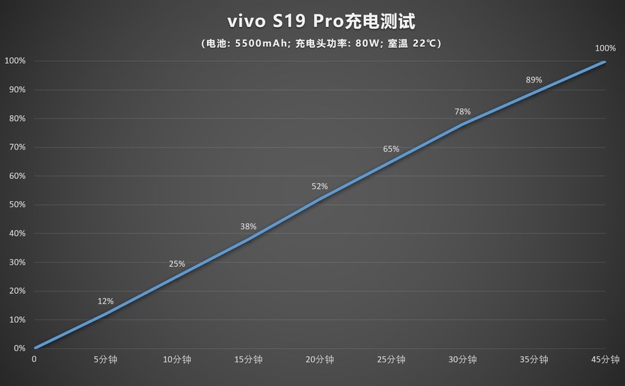 除了搭载5500mAh的大容量电池外,vivo S19 Pro还支持80W的远航充电技术。经过实际测试,仅需10分钟手机即可从零电量充至25%,而在短短30分钟内就能为vivo S19 Pro注入高达78%的电量,让手机快速“回血”,完全充电的过程仅需约45分钟左右的时间。这意味着,即使晚上入睡前忘记为手机充电,也完全不必担心,几乎可以摆脱对手机电量的担忧。