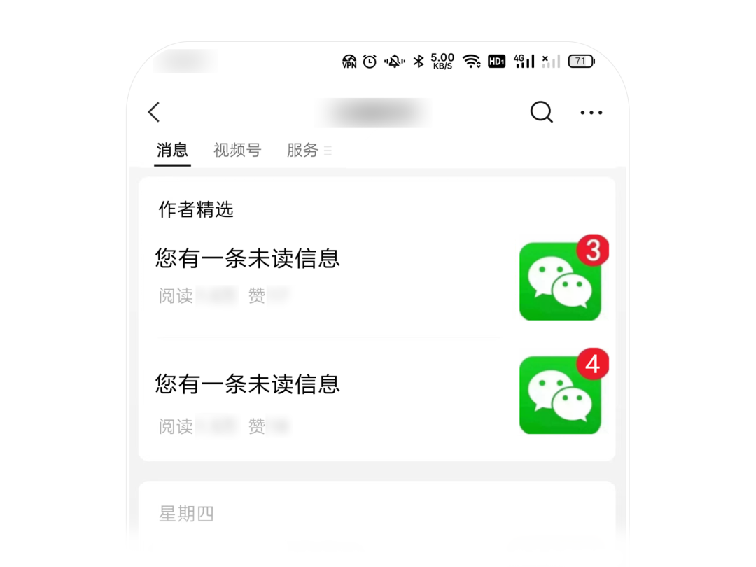 2、标题内容、封面采用未读消息提示形式/虚假视频播放键图片等诱导用户点击查看。