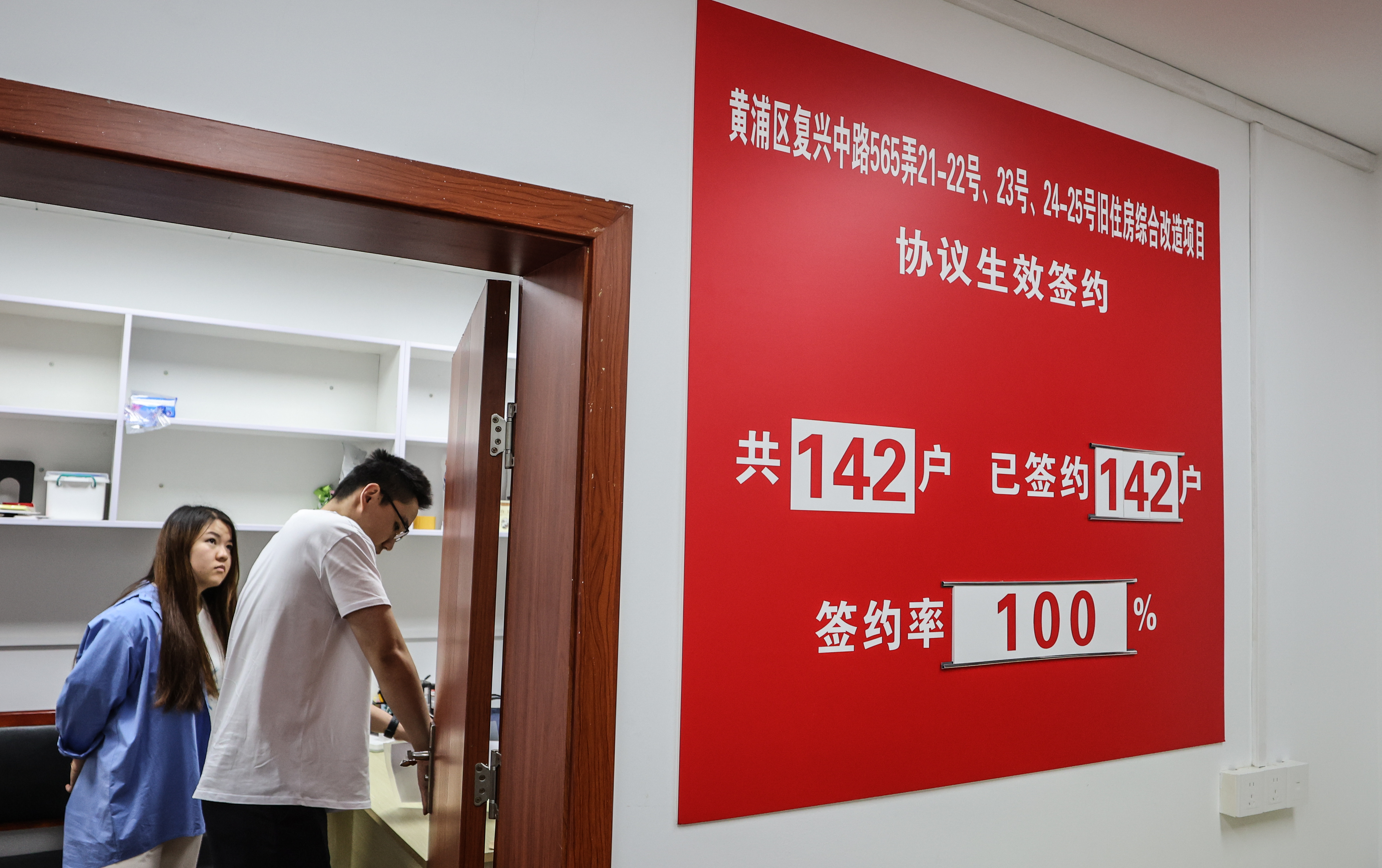 今天(30日),是复兴中路565弄21-22号、23号、24-25号旧住房综合改造项目二轮签约启动首日,就迎来了100%签约生效。