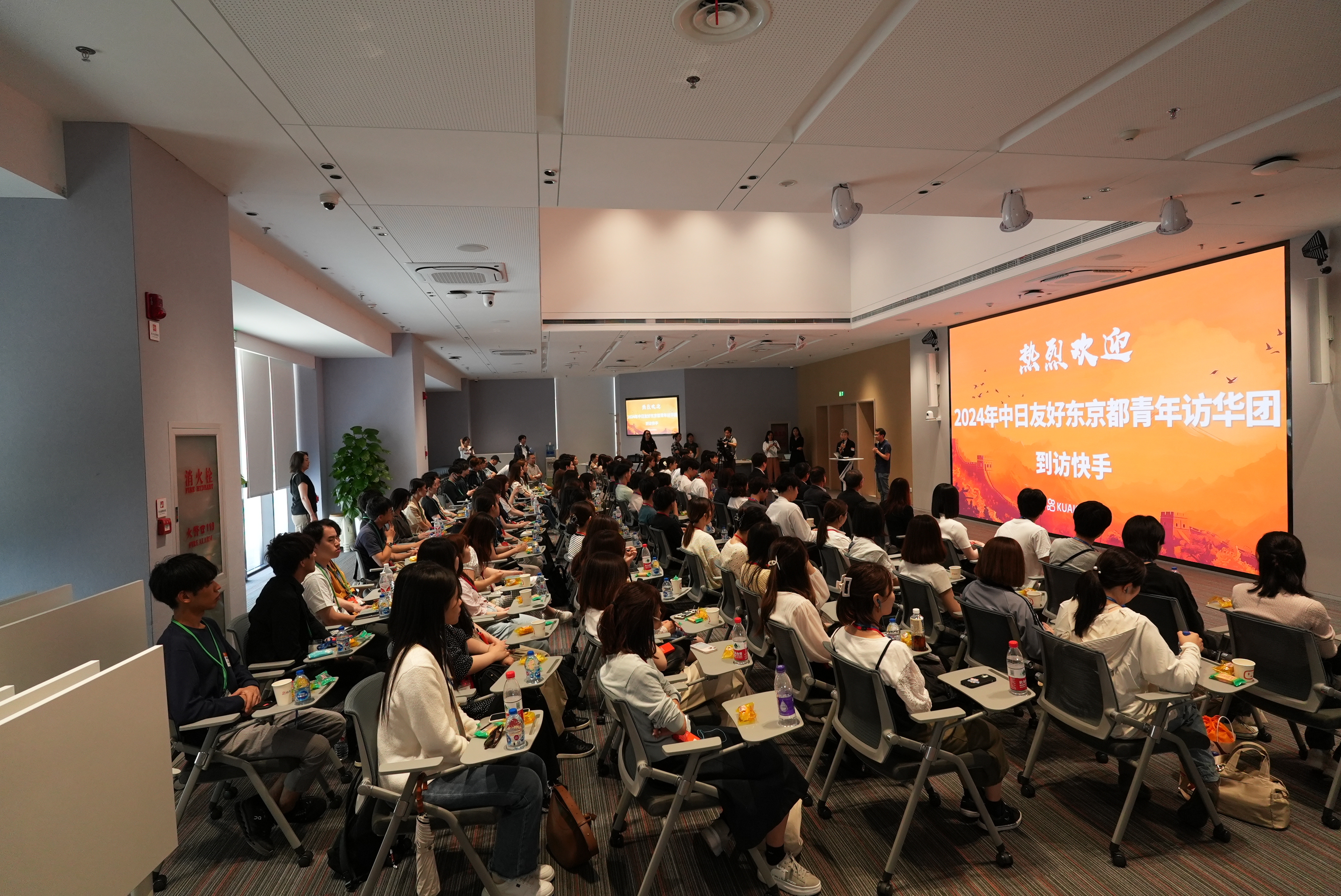 5月30日,中日友好东京都青年访华团参观北京快手总部。快手的工作人员从园区环境设施、国内外业务情况等方面展开介绍,让访华团成员们从各个方面了解短视频平台快手。