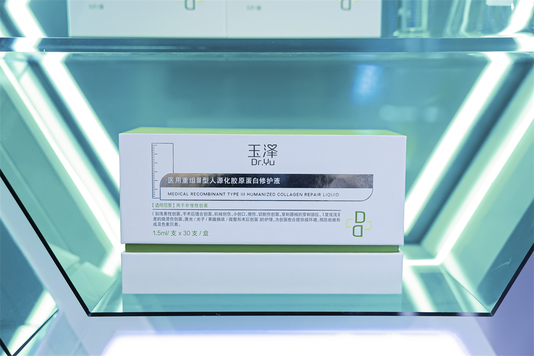 比如,上海家化旗下功效护肤品牌玉泽带来了首次推出的械字号产品——玉泽重组胶原蛋白修护贴敷料和玉泽医用重组Ⅲ型人源化胶原蛋白修护液,正式进驻医美术后修复市场。