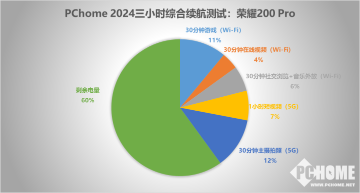荣耀200 Pro配备额5200mAh大容量青海湖电池,电池能量密度高,能大幅度压缩体积,对手机的厚度降低帮助巨大。三小时续航实测剩余电量60%,游戏和拍照比较费电。