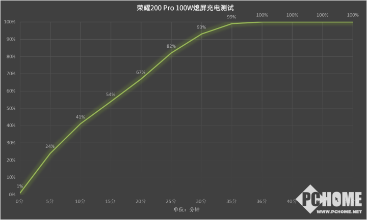 快充方面,荣耀200 Pro提供了100W有线快充,实测5分钟充电24%,15分钟充电54%,36分钟UI显示100%电量,总耗时51分钟完全充满。UI充满速度很快,位居总榜的第8位,完全充满的充电速度位居2024年总榜的第14位。