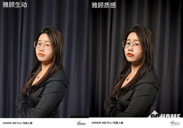荣耀方面提供了雅顾生动、雅顾质感和雅顾经典三种人像模式,雅顾经典是黑白效果,我们平时用到的不多。雅顾生动则比较贴近我们日常的拍照效果,人像表现上具有自然的美颜效果,虚化效果自然,对人像形成了更为突出的效果,光线与阴影的呈现上效果真实有立体感。雅顾质感模式的效果正如该模式的名称,看上去就非常有质感效果,能够明显让我们感受到是有额外打光的,相比生动模式,照片色温偏暖。两种模式对比之下,质感模式会有明显的正式感。