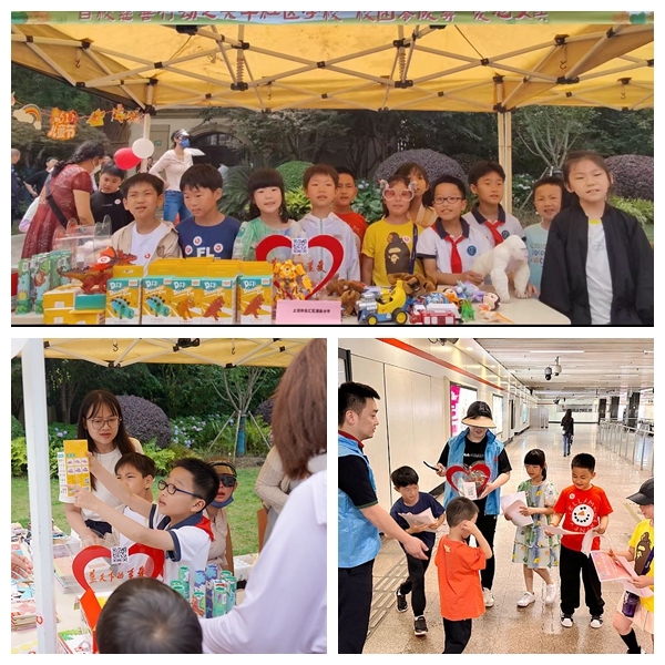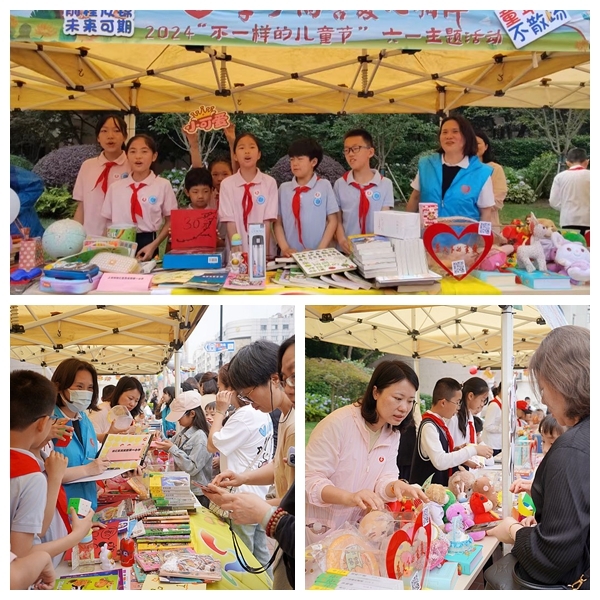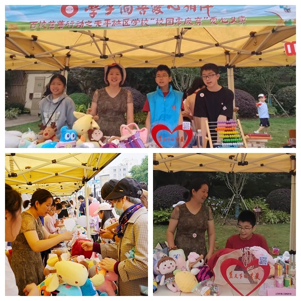 活动现场设置了义卖摊位,徐汇区天平街道社区学校组织上海市南洋模范初级中学、上海市第二初级中学、上海市徐汇区高安路第一小学、上海市徐汇区建襄小学、上海市市级机关第一幼儿园等学校捐出闲置物资,并在现场开展义卖。这是该校第二次组织辖区学校参加这样的活动,以此给孩子们过一个不一样的儿童节,给家长提供一次有价值的亲子陪伴,传递“帮助他人,阳光自己”的爱心奉献精神。许多过路的市民也纷纷加入献爱心的行列,或参与慈善义卖购买物品,或直接捐款献爱心,现场温情满满。