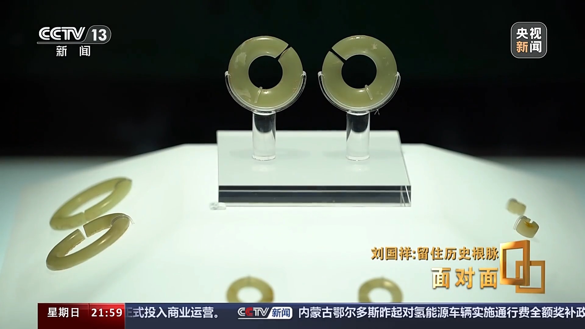 刘国祥:我们1993年发掘出来的,玉玦呈正圆形,内径、外径完全一致,而且大小、重量都一致,每一个是23克,所以说在没有金属工具的前提下,兴隆洼文化先民距今八千年左右,掌握了这种玉雕的工艺技术,那是非常先进的。