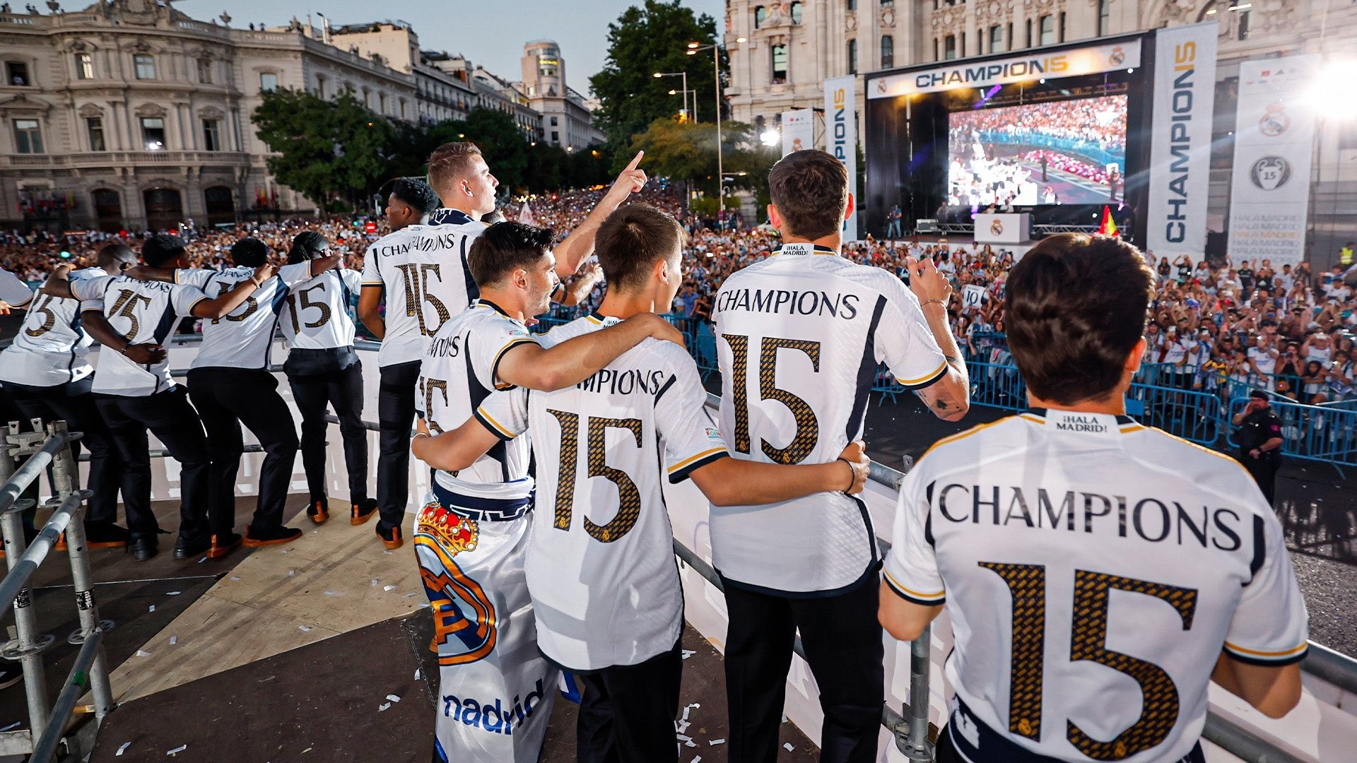 皇家马德里在刚刚结束的欧冠决赛中取得了胜利并夺得了队史第15座欧冠奖杯。皇马中场费德里科-巴尔韦德在个人社交媒体晒出了赛后全队身着冠军衫游行庆祝的图片。