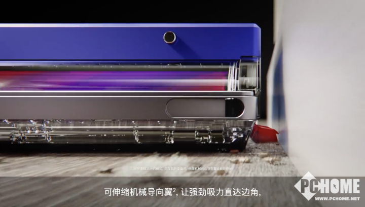 据悉,戴森360 Vis Nav采用了目前并不常见的D型机身,并在边缘位置增加了单独的可伸缩机械导向翼,可以将边角部分的垃圾归拢收纳,借助于强劲的风力完成清洁。作为以马达技术闻名行业的品牌,戴森360 Vis Nav内置了内部配备高性能的Hyperdymium电机,最高转速可达110000转/分钟,借助碳丝、硬刷毛和软尼龙纤维组成的三重材料的滚刷,可以将地面的各种形态污渍进行清洁。在环境识别方面,戴森360 Vis Nav的顶部配备了360度视觉系统,通过顶部的摄像头绘制房屋清洁地图,配合强大的识别算法来实现避障、绘制地图、探测墙壁等功能。