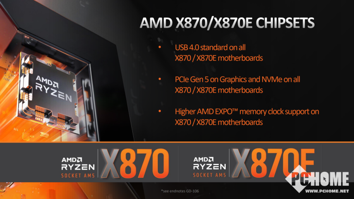 AMD已经公布了下一代旗舰主板X870E以及X870主板芯片组,在没有更换接口的同时各项扩展配置上带来进一步升级。