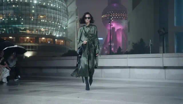 昨夜,巴黎世家在上海举办了2025春季系列首发大秀,外滩地标建筑上面炫目的霓虹灯光,在暗雨夜的衬托下更添赛博朋克氛围感,模特的穿着依旧个性大胆,现场嘉宾举着清一色的黑伞在雨中观展,隐隐透出一股名利场的气息。