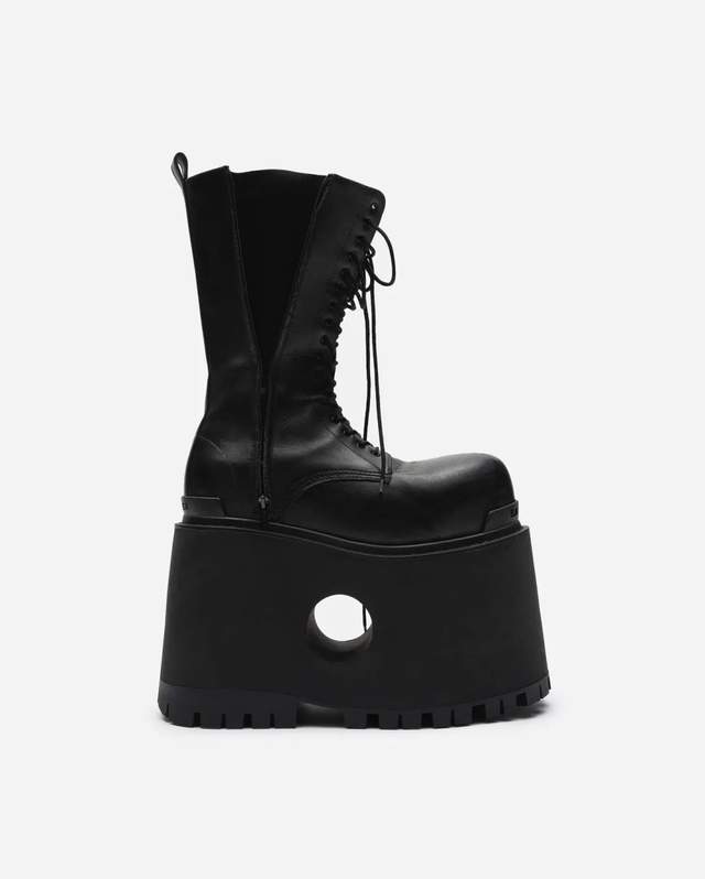 如果不是穿了巨巨巨厚的18cm增高的厚底鞋/16cm增高的Platfrom运动鞋,真担心一场瓢泼大雨下来,模特的衣摆会惨不忍睹。