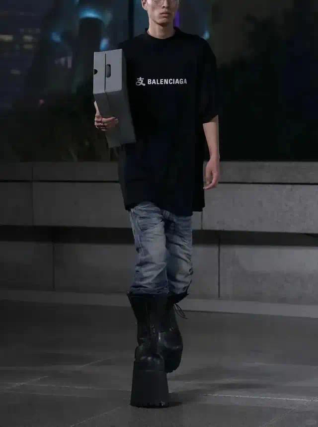 支付宝的logo和BALENCIAGE的字样,被印制在了T恤的正反两面上,给人一种逛淘宝的熟悉感,但廓形的款式,又隐隐显示出它的与众不同之处。