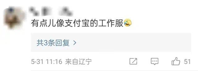 关于外观,有人说,这件T恤有点像支付宝的工作服。