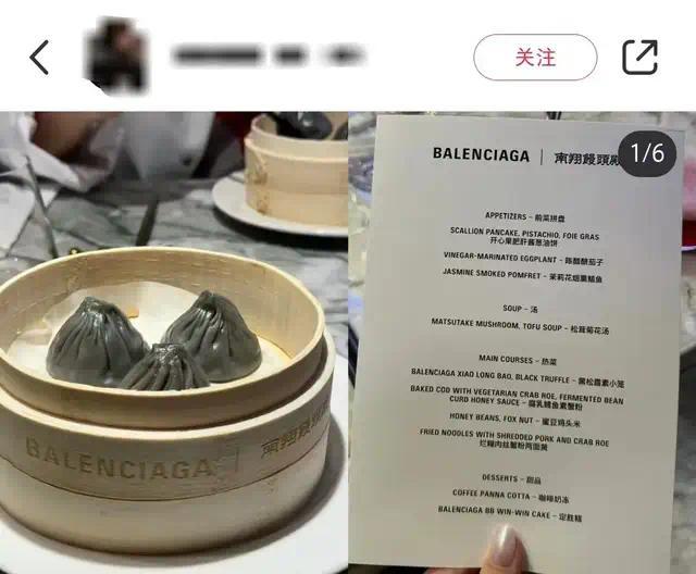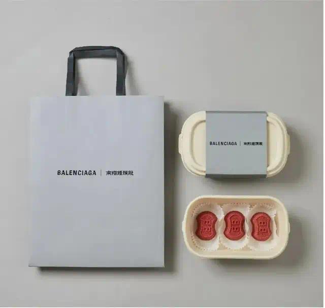 除了联名支付宝,为了融入本土特色,本次巴黎世家还与南翔馒头殿进行了合作,推出一款“Balenciage法国黑松露小笼包”和印有Balenciaga BB标识的特制定胜糕。