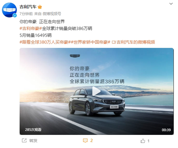6月3日,CNMO了解到,吉利汽车官方宣布,吉利帝豪全球累计销量已突破惊人的386万辆,而在刚刚过去的5月,其销量达到16495辆。