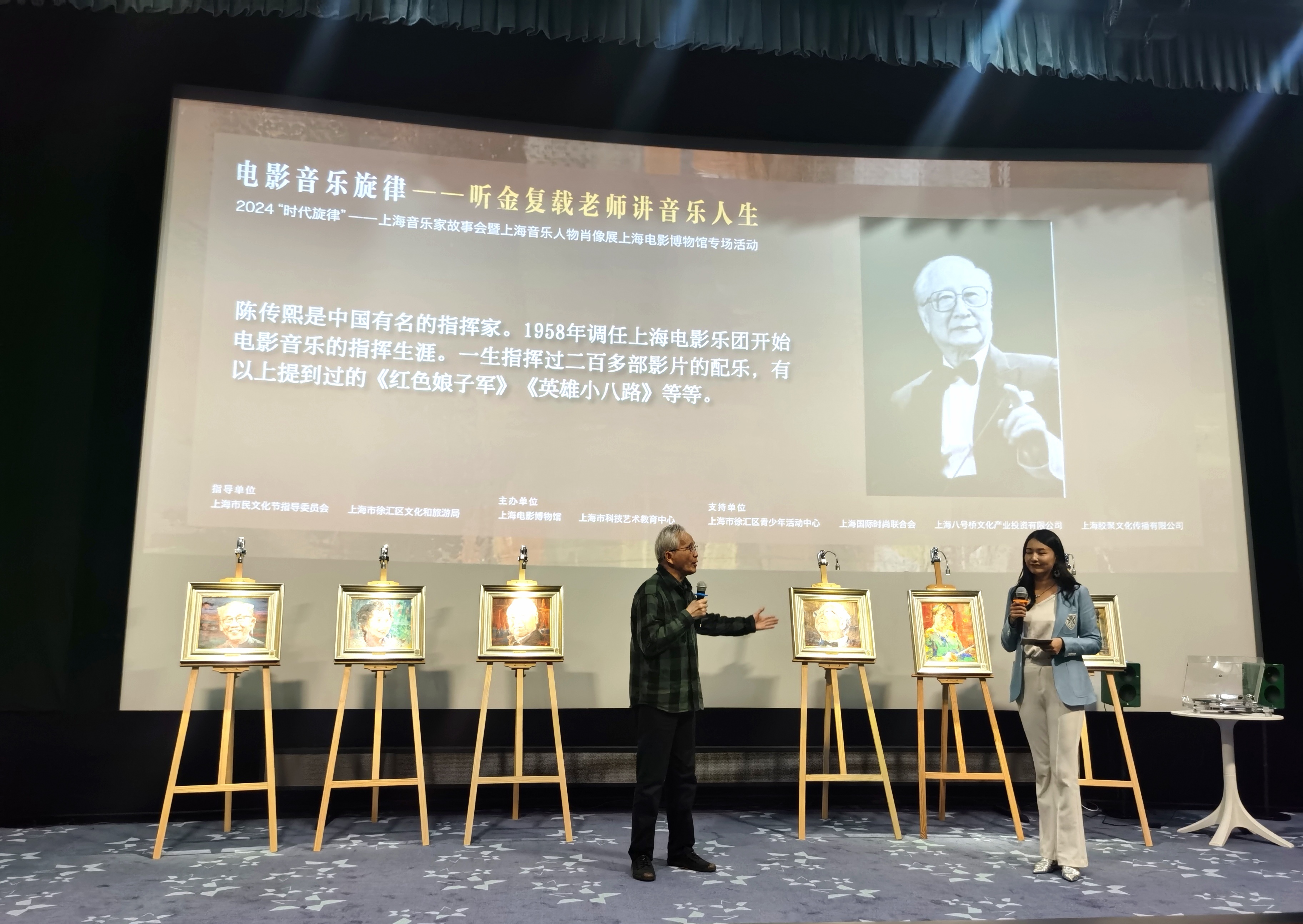 近日,82岁的作曲家金复载携手画家贺寿昌,在上海电影博物馆为孩子们带来一场“听金复载老师讲音乐人生”的讲座。这是2024“时代旋律”——上海音乐家故事会暨上海音乐人物肖像展的“六一”专场。
