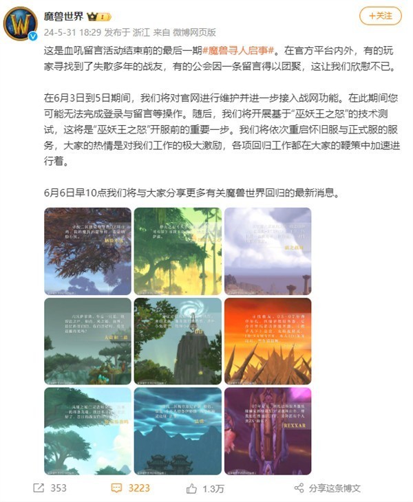 在此期间,用户可能没法登陆,或者留言。所以出现这些情况,可以等待6号的时候再试一下。官方也公布了计划,将会开展《巫妖王之怒》怀旧服的技术测试,测试如果没有问题,可能近期就会开服。
