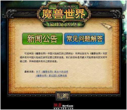 2005年国服正式开始运行,初始的代理商是九城(第九城市)。而在四年后,九城和暴雪合约到期后,众多网友都以为会续约,结果却令人大跌眼镜,网易取得了魔兽世界的代理权,九城只能关闭服务器,这一关就是几个月,没有WOW的暑假是真的难熬啊。