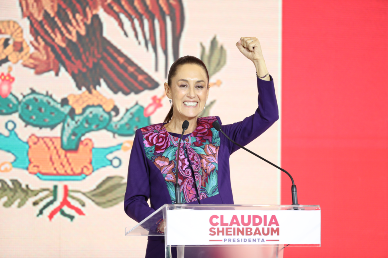 6月3日凌晨,在墨西哥首都墨西哥城,辛鲍姆宣布胜选。