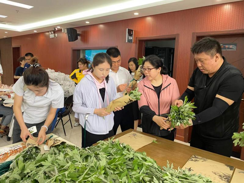现场编织五彩绳、制作艾草花束也是本次民俗游园会的特色,曾经属于老传统的端午习俗受到年轻参与者的热烈欢迎。大家在专业老师的带领下将不同颜色的彩色细线亲手编织成五彩绳并佩戴在手腕上,寓意着平安健康,精心装扮的艾草花束更是为活动现场增加了浓重的节日仪式感和氛围感。