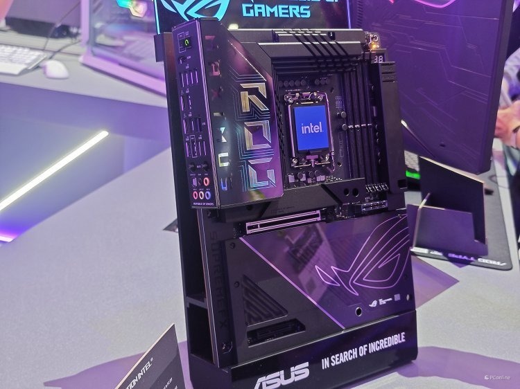 接下来就是DIY环节了,熟悉DIY硬件圈的玩家都知道,下半年Intel即将发布桌面端处理器Arrow Lake,将采用新的LGA1851插槽,ROG玩家国度直接在展会现场给大家带来了全新的 ROG Maximus Z890 Hero 主板,这是华硕首款基于英特尔 Z890 芯片组的高端游戏 PC 主板。从细节上可以看到,这款主板配备了 Thunderbolt 4、Wi-Fi 7、USB4、5 GbE 和新一代 SupremeFX 板载音频,同时还是背插设计,颜值效果拉满,这也让小编我更加期待下半年新处理器的性能表现。
