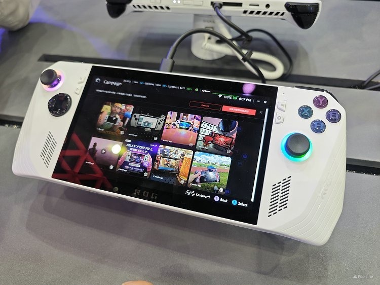 另外,喜欢游戏的玩家有福了,在ROG玩家国度的展台上我们还能见到最新发布的掌机ROG Ally X,它除了改为黑色外观之外,在硬件规格与使用体验方面也进行了多处的改进。核心硬件部分沿用了AMD Ryzen Z1 Extreme处理器,性能达8.6 TFLOPS,配备7英寸120Hz FHD显示面板,支持FreeSync Premium技术并具备500尼特亮度。新款主要针对存储空间、内存和电池续航力进行升级,内置存储从512GB升级至1TB,内存也从16GB提升到24GB的LPDDR5X,另外还配备了80 Wh电池,可以说是目前最大电池容量的掌机。
