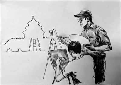 在1972年所谓“回潮”期间,学校组织了许多兴趣小组,我自然参加了美术组。要是哪天晚上集中在谁家画画儿,李老师到时候准赶来辅导;还叫我星期天到他家去,讲解他上学时的各种作业,他搞创作时也常让我去瞧,有时还带我出去画画;一次李老师两口子——两位美术老师到东交民巷写生,也叫我跟着一块儿骑车去。