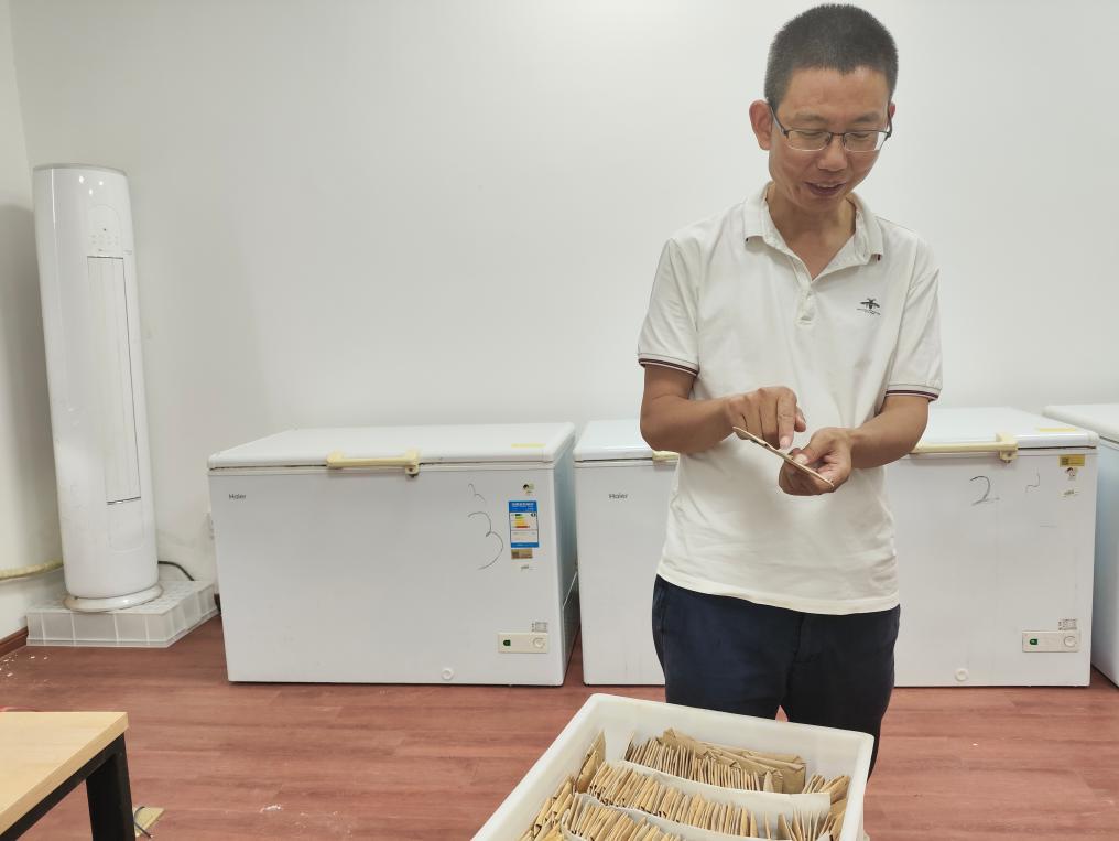 又到一年油菜籽收获季,付东辉忙着把彩色油菜菜籽晒干,对种子品质进行测定分析并一一标记,准备秋天播种。