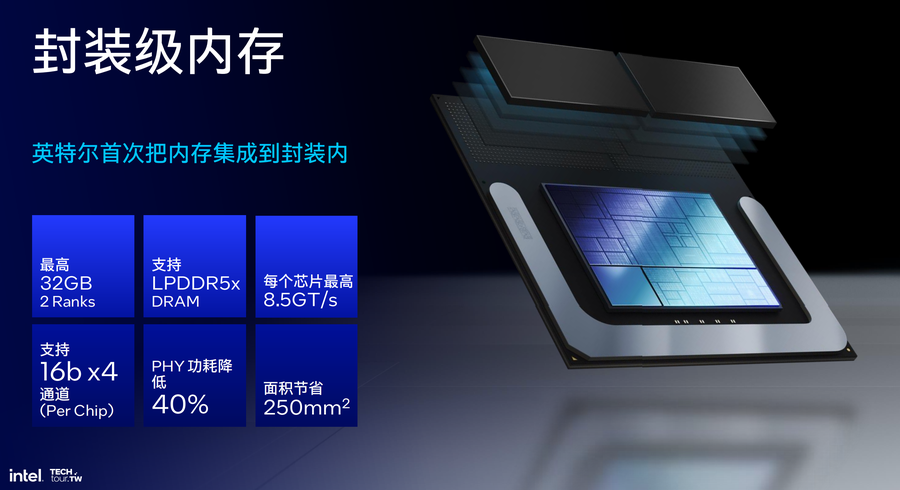 三,为了追求小型化,英特尔首次把内存集成到处理器封装内