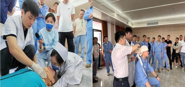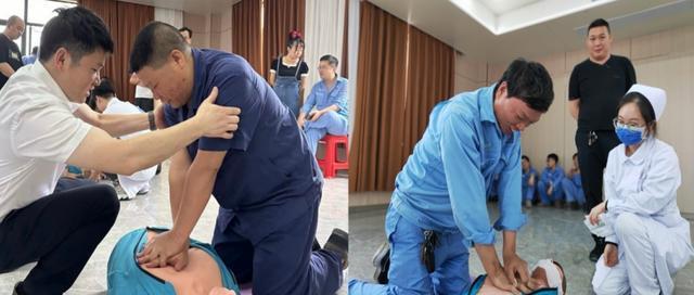 为了让每位员工都能熟练掌握急救技能,急救团队分为两组,每组一人讲解、一人操作,通过连贯动作与分解动作的展示,反复讲解心肺复苏的适应症和操作要点,并详细演示了心肺复苏的急救步骤。员工们积极参与,纷纷上前体验,医护人员则耐心指导,及时纠正实操中的难点和误区,确保每个人都能掌握正确、规范的急救方法。