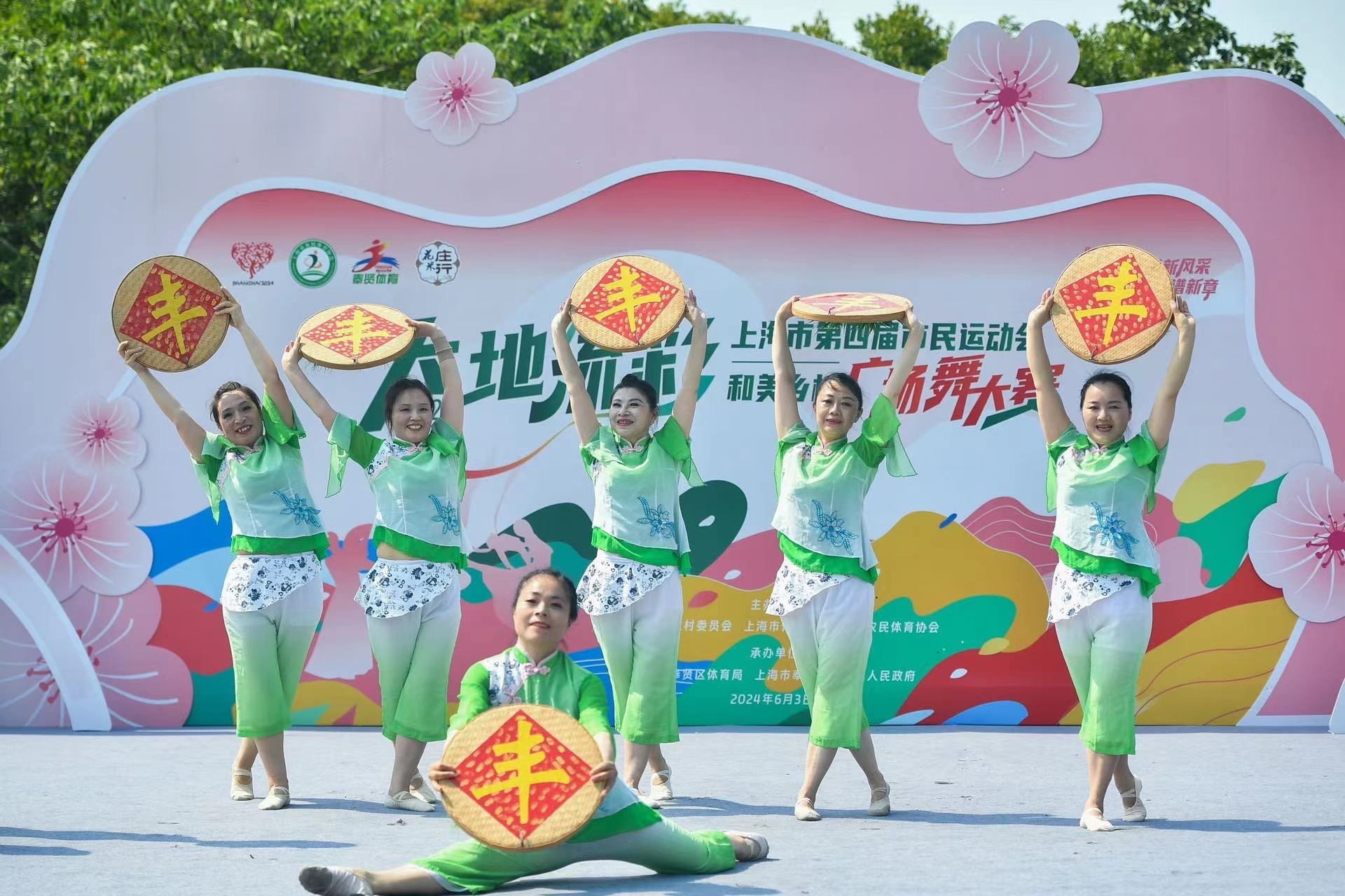 6月3日,大地流彩·2024年上海市第四届市民运动会和美乡村广场舞大赛在奉贤庄行郊野公园区举行。