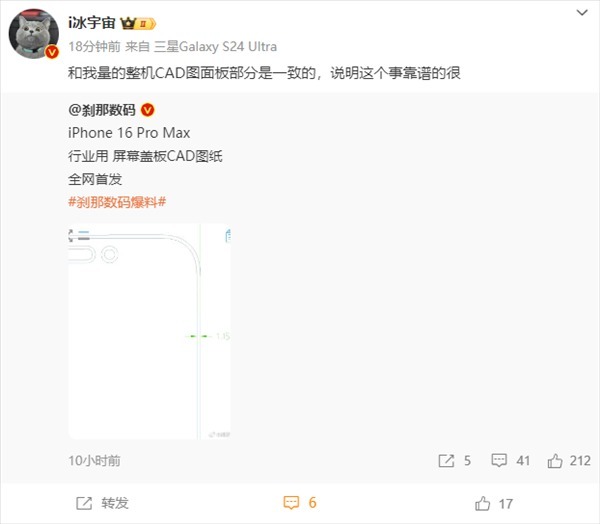 数码博主@i冰宇宙 也转发了这一消息,并表示:“和我量的整机CAD图面板部分是一致的,说明这个事靠谱的很。”这进一步增强了这一消息的可信度。