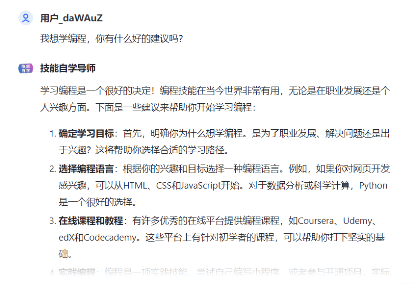 第二步,通过@计划制定助手,调用计划智能体做学习规划。在这里,@计划制定助手,为笔者制订了一个为期12周的python学习规划。