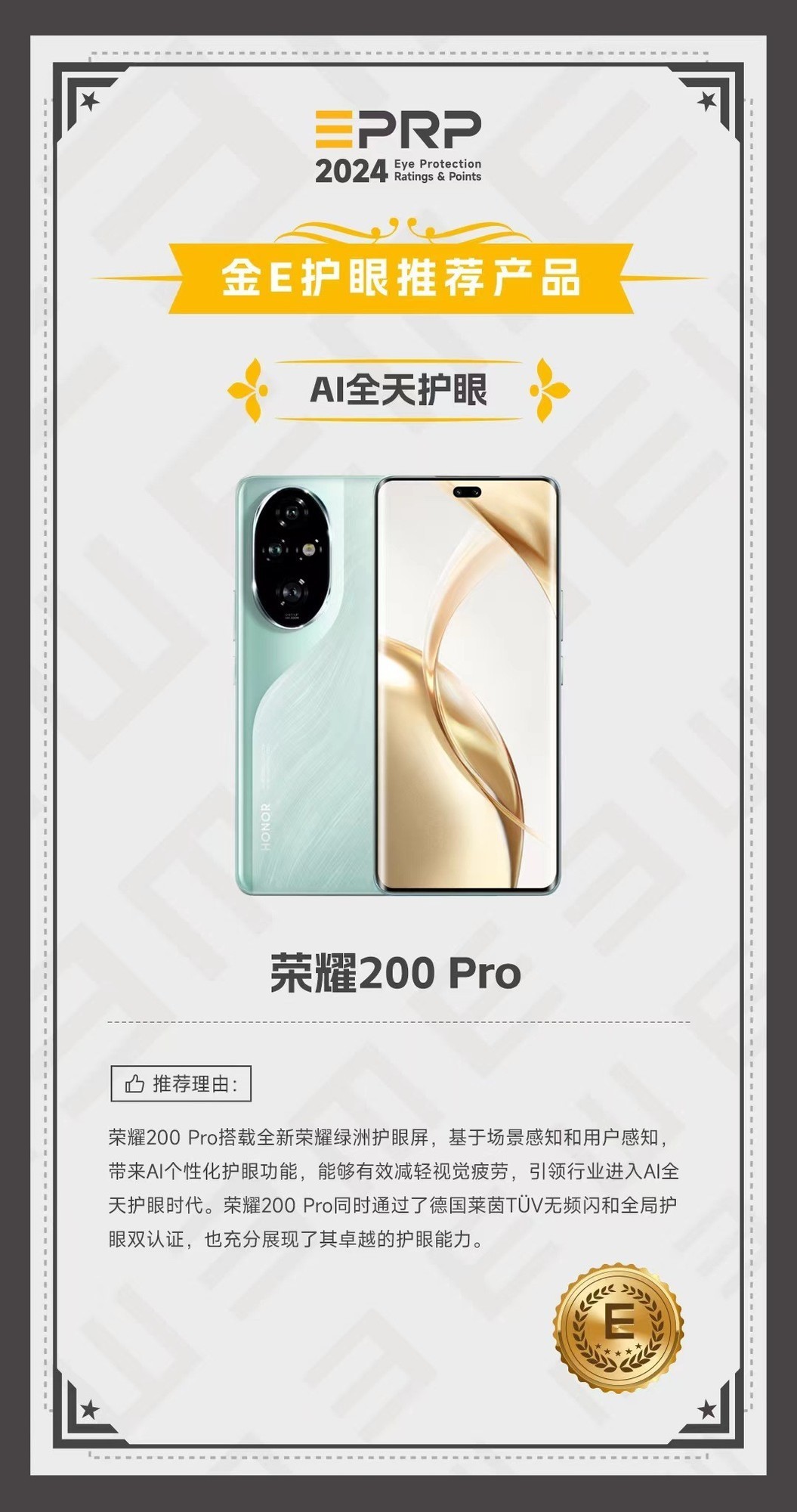 2024 金E护眼-移动生活护眼推荐产品:荣耀200 Pro