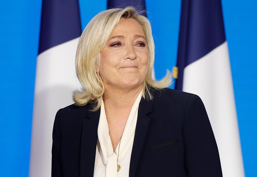 2022年4月24日,法国极右翼政党“国民联盟”候选人玛丽娜·勒庞在巴黎出席法国总统选举后的集会。新华社发(肖恩·洛朗摄)