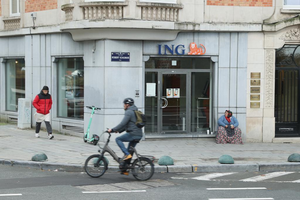 2023年11月15日,人们从比利时布鲁塞尔一家银行网点前经过。新华社记者赵丁喆摄