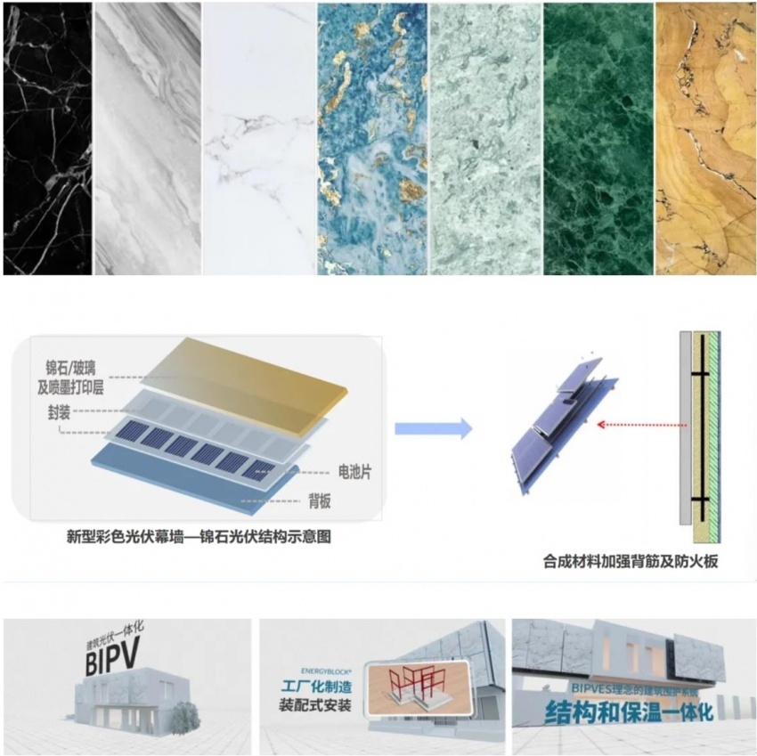 据悉,今年中国能建绿色建材公司研发出品了一款“全球首创新能源高档建材”——光伏锦石。该材料实现了“高端装饰、高效发电、墙体外围护”三大功能,既可装饰和替代外墙,又具备很高的发电效率,可以每天带来清洁发电收益。同时,三种功能也使产品的功能性和绿色性超过天然材料,具备更高的经济效益和社会生态效益。