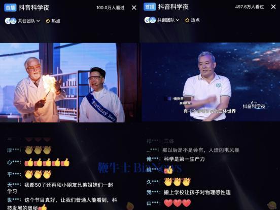 鞭牛士 6月7日消息,抖音联合北京卫视共同推出“抖音科学夜”晚会,抖音直播间累计观看人次超过520万。晚会于6月1日晚8点,在北京卫视、北京纪实科教频道同步播出。