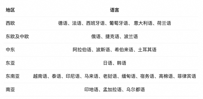我们投入了大量精力研究如何扩展多语言预训练和指令微调数据的规模并提升其质量,从而提升模型的多语言能力。尽管大语言模型本身具有一定的泛化性,我们还是针对性地对除中英文以外的27种语言进行了增强: