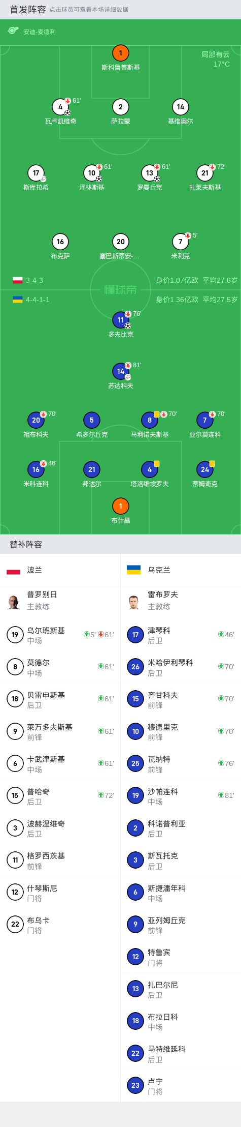 第30分钟,罗曼丘克角球进攻中抢点甩头破门,波兰3-0!