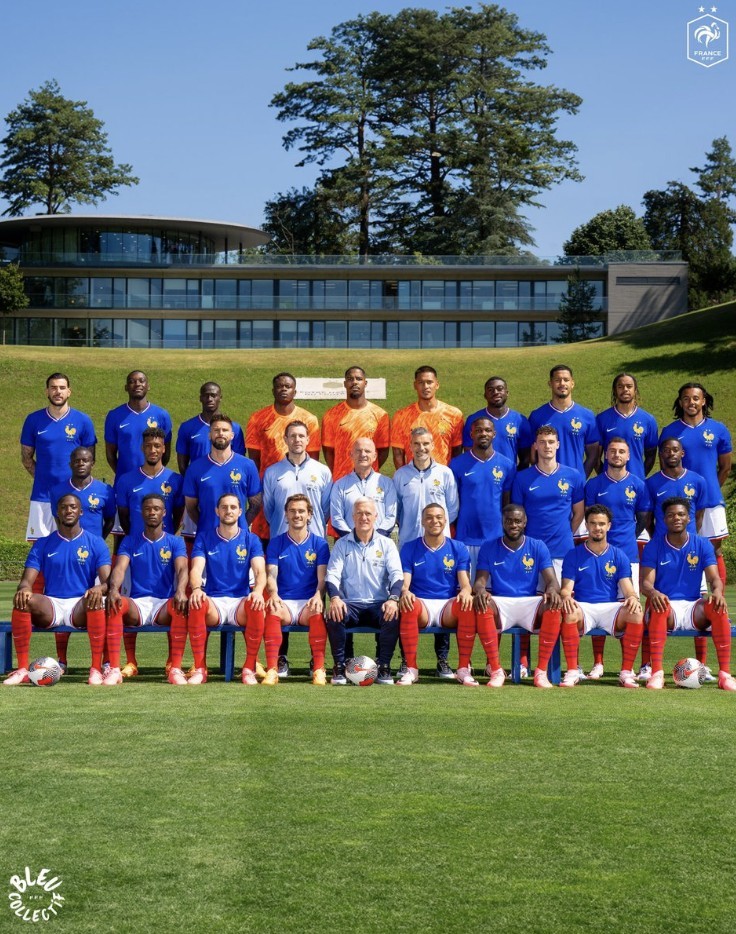 不久前,法国队官方发布了欧洲杯全家福。共有25名球员、4名教练组成员出镜。