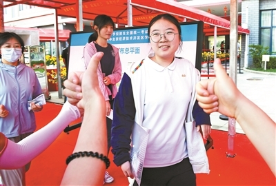 昨天下午,北京高考英语科目考试结束。在人大附中经开学校校门外,老师们给完成考试的学生鼓掌打气。