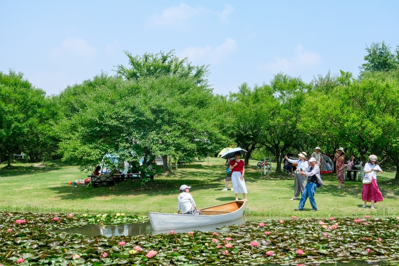 春末夏初,园区的花海也迎来了更新迭代,各类夏花正展现出旺盛的生命力。在园内多片水域,睡莲如地毯般在蜿蜒水系中铺展,姹紫嫣红点缀于碧绿湖面上,美若一幅幅清新雅致的水粉画。不少市民漫步于湖边步道,听风吟鸟鸣、望湖观景,感受初夏的别样韵味。更有爱好皮划艇的游客,挥桨游弋于湖面,与莲花来一场“零距离”接触。